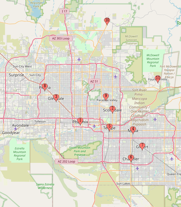 At Cactus Valley Auto Glass, we’re all about convenience. That’s why we offer mobile auto glass services that come straight to you. Whether you’re at home, at work, or somewhere in between, our skilled technicians can provide the auto glass services you need, right where you are. We’re proud to serve customers in a variety of locations across the Phoenix Valley. Check out our primary service areas below:
